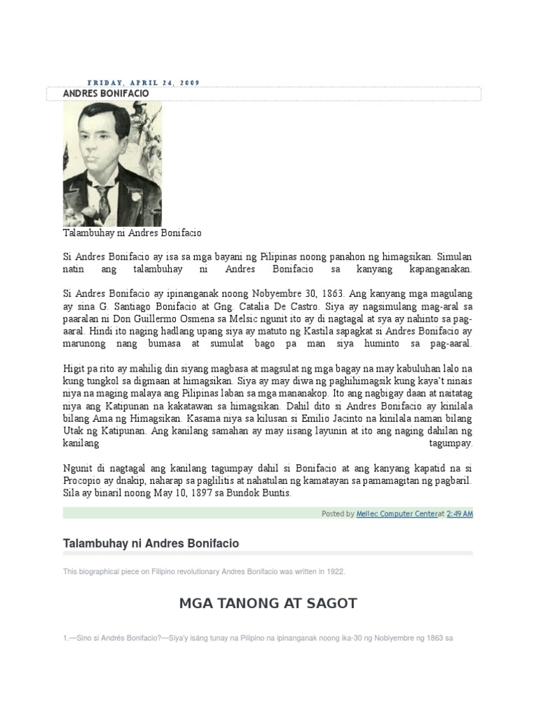 Talambuhay Ni Andres Bonifacio Pdfcoffee Com