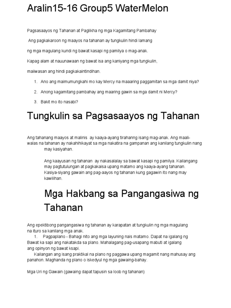 Pagsasaayos Ng Tahanan At Paglikha Ng Mga Kagamitan Pdf