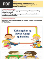 Ang mag-aaral ay naipamamalas ang pag-unawa at pagpapahalaga sa sariling pamilya at mga kasapi nito at bahaging ginagampanan ng bawat isa. Ang module ay naglalayon na maipakita ito sa mga mag-aaral sa simple at masayang paraan. Ang lahat ng mga miyembro ng pamilya ay matuto mula sa bawat isa.